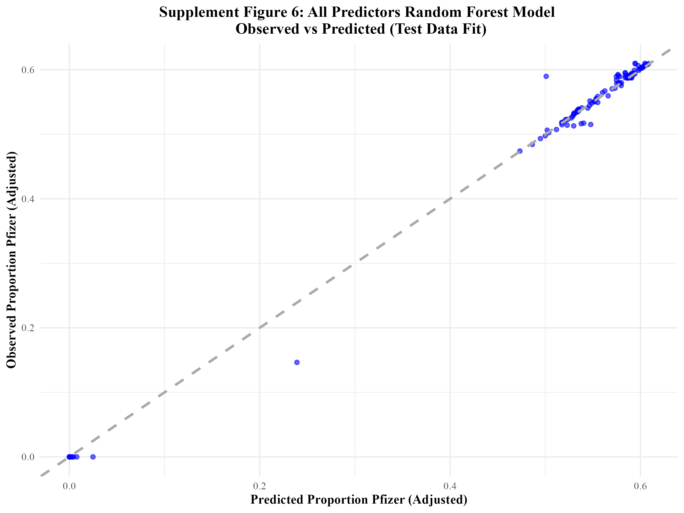 Figure 6 displays the corresponding observed vs predicted plot for this model when it was fitted to the test data.